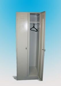 Шкаф ШВ 2-2 вещевой металлический сборно-разборный 1850Х600Х500 мм. двухдверный с двумя независимыми отделениями предназначен для хранения сменной одежды в раздевалках промышленных предприятий, спортивных залов, учебных заведений и т.п. Шкафы данной серии незаменимы там, где необходимо оборудовать компактную раздевалку для большого коллектива. В каждом отделении: полка для головного убора, перекладина для вешалки, врезной замок «EUROLOCKS» (Германия), прорези для вентиляции. Покрытие на всех деталях шкафа - порошковое полимерное, цвет светло-серый (RAL 7035).