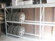 Металлический стеллаж окрашен порошковой краской, цвет серый.